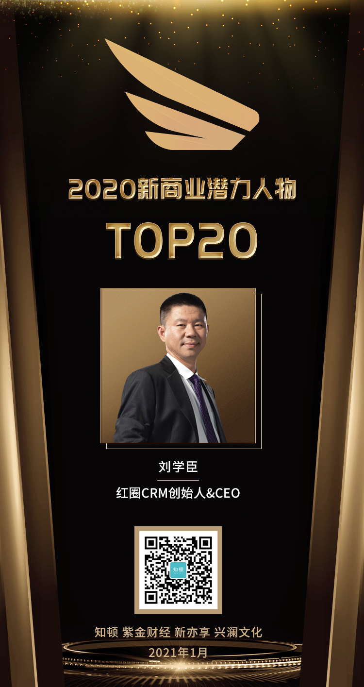 紅圈?CRM?與創(chuàng)始人劉學臣雙雙入選《2020?新商業(yè)潛力榜》