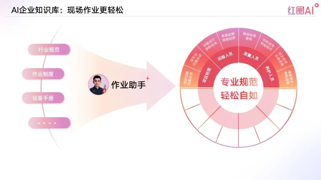 紅圈AI,以大模型+智能檢索技術為引擎,構建企業知識資產體系,實現“經驗即問即答”,推動企業從“人找知識”走向“知識找人”。