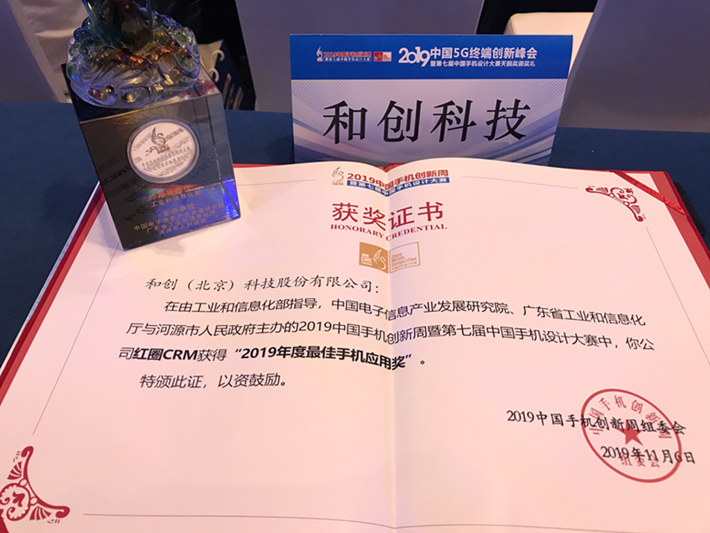 “紅圈CRM”憑借卓越的創(chuàng)新能力、深入垂直行業(yè)的專業(yè)性、人性化的產(chǎn)品設(shè)計能力、成熟的商業(yè)能力和穩(wěn)健的發(fā)展態(tài)勢,從數(shù)百家參選企業(yè)中脫穎而出,獲得了由2019年中國5G終端峰會評出的《2019年度最佳手機應用(APP)獎》。