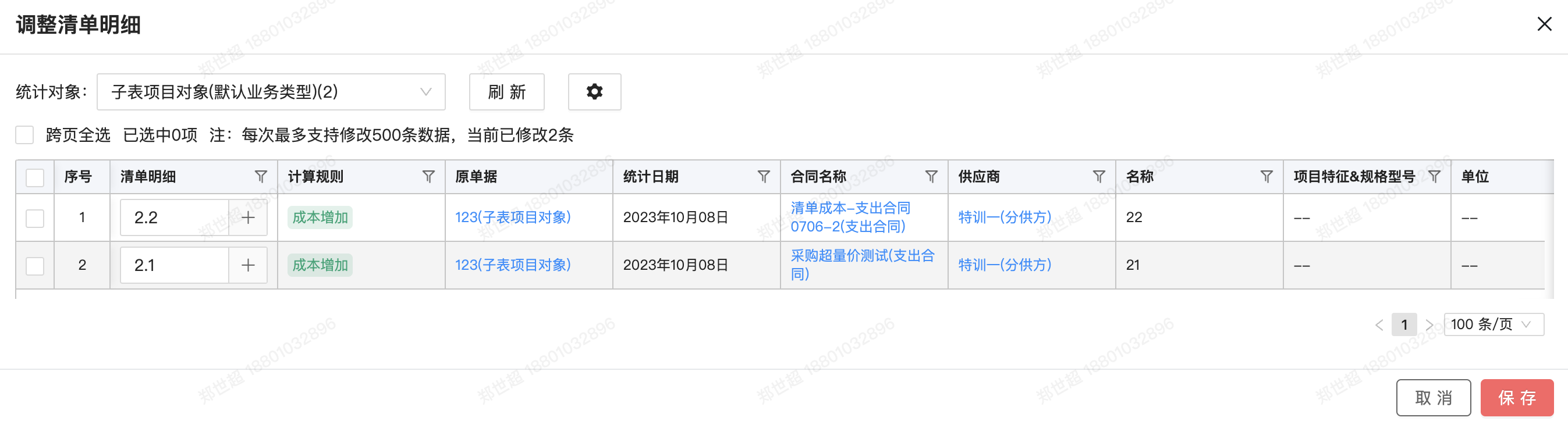 ● 數(shù)據(jù)穿透支持修改&批量修改成本清單明細