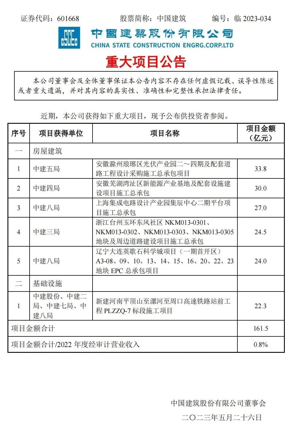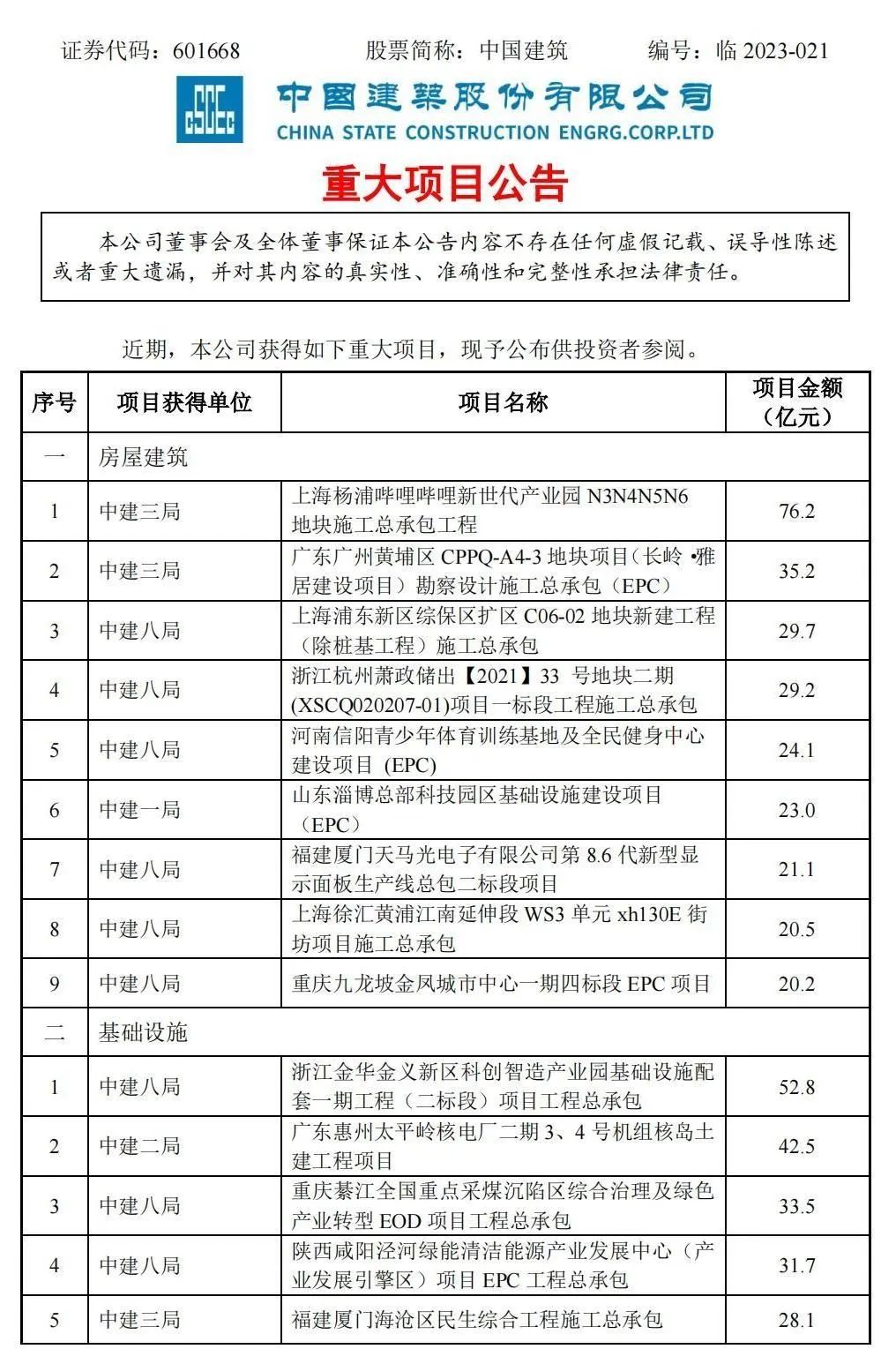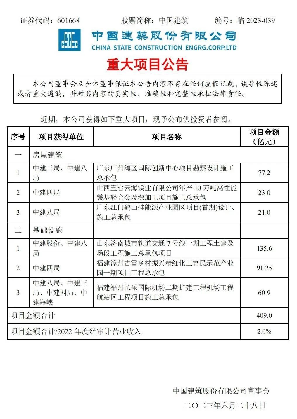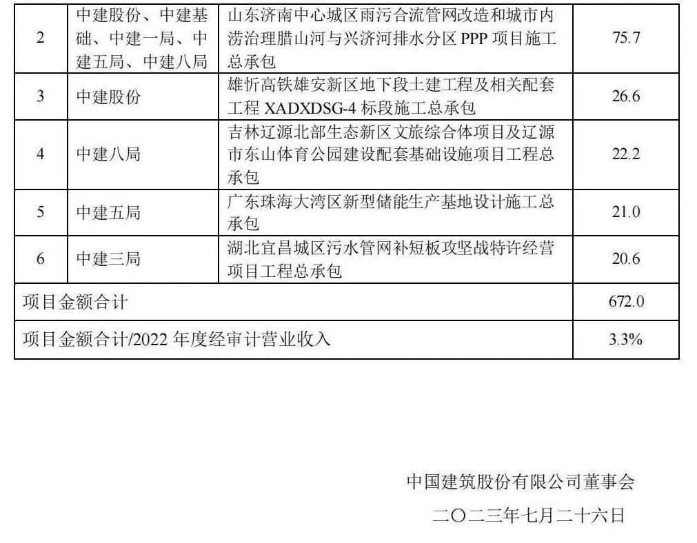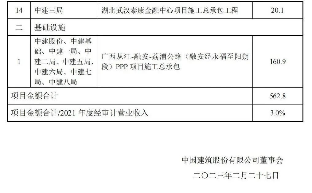 附中國(guó)建筑重大項(xiàng)目公告:
