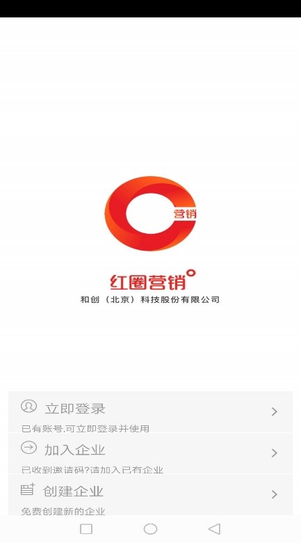 安裝完畢打開(kāi)APP,可以看到三種登錄方式:立即登錄、加入企業(yè)、創(chuàng)建企業(yè);