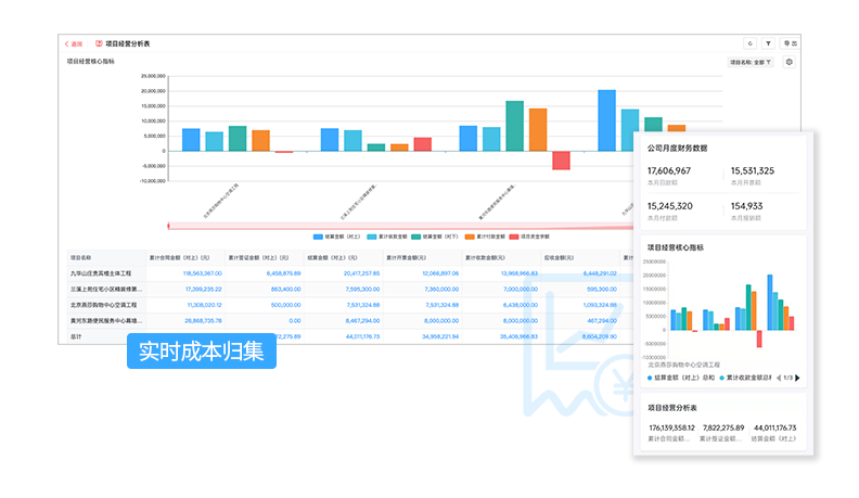 動態(tài)成本管理,實時成本歸集,隨時掌握項目收支、盈利狀況。